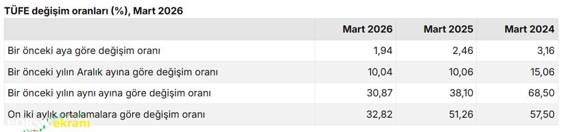 Bu göstergede yılbaşına göre artış yüzde 8,03 olurken, on iki aylık ortalamalara göre artış yüzde 32,50 olarak kaydedildi.