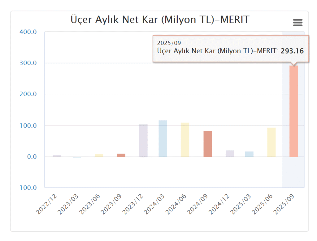 Merit Turizm Yatırım, 2025 yılı üçüncü çeyreğinde 414,5 milyon TL net kâr açıkladı. Şirketin esas faaliyet kârı yıllık bazda güçlü artış gösterirken, iştirak gelirleri de kârlılığa önemli katkı sağladı. Bu performansın sürdürülebilirliği ve hisse fiyatına yansıması ise yatırımcıların odağında.