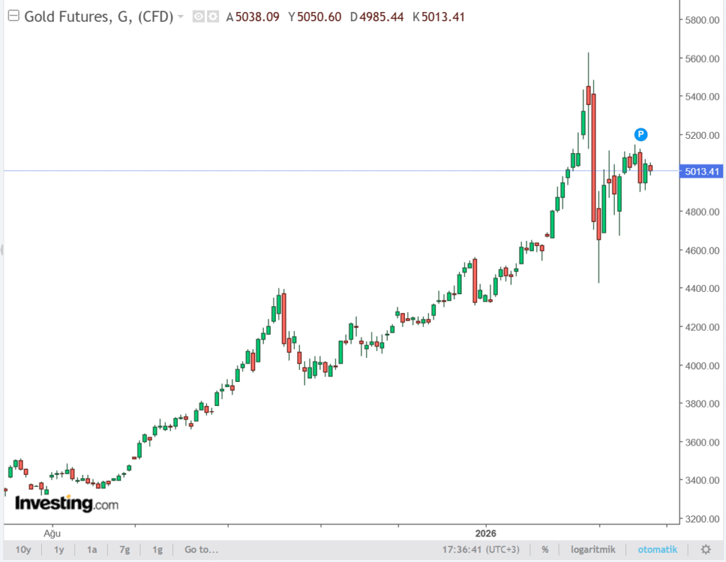 Temel tarafta, Orta Doğu’daki jeopolitik gerilim ve İran–ABD hattındaki tansiyon, güvenli liman talebini canlı tutmaya devam ediyor. Buna ek olarak ABD’de açıklanan görece ılımlı enflasyon verileri, Federal Reserve’in yıl içinde faiz indirimlerine devam edebileceği beklentisini destekleyerek orta vadeli görünümü pozitif kılıyor. Ancak gün içi dinamiklerde 5.000 dolar seviyesi kritik bir eşik konumunda. Bu bölgeden net bir destek-tepki gelmemesi halinde, tatil hacmi etkisiyle fiyatın günü 5.000 doların altında kapatma ihtimali artabilir.