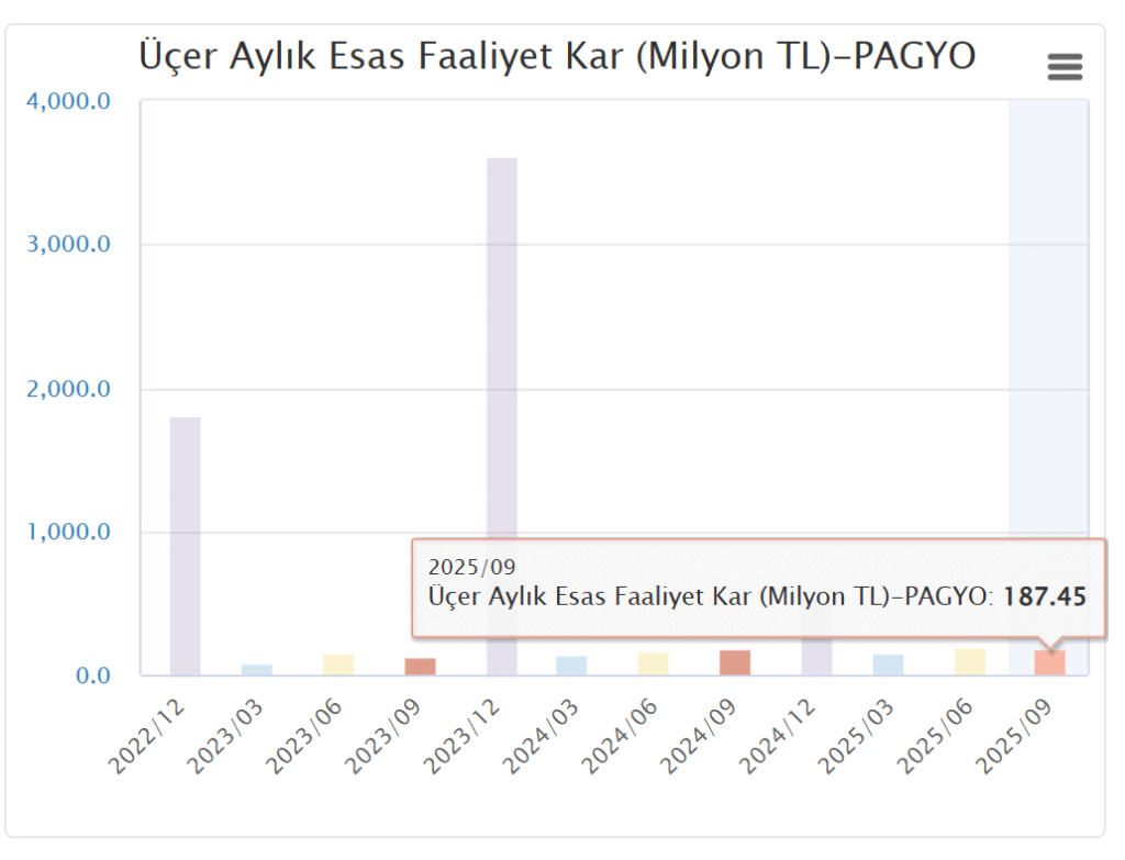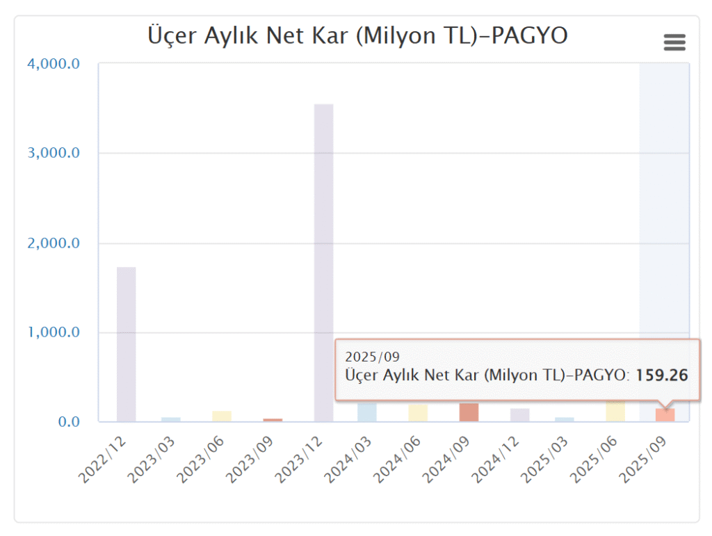 Panora Gayrimenkul Yatırım Ortaklığı PAGYO), 2025 yılı üçüncü çeyrek finansal sonuçlarını açıkladı. Şirket, 30 Eylül 2025 itibarıyla 757,8 milyon TL gelir elde ederken, net dönem kârı 514,2 milyon TL olarak gerçekleşti. Bu sonuç, geçen yılın aynı dönemindeki 657,4 milyon TL’lik kârın altında kaldı. Kârdaki gerilemede artan vergi giderleri ve azalan net parasal kazanç etkili olduPANORA – 30.09.2025 – SPK – KON….