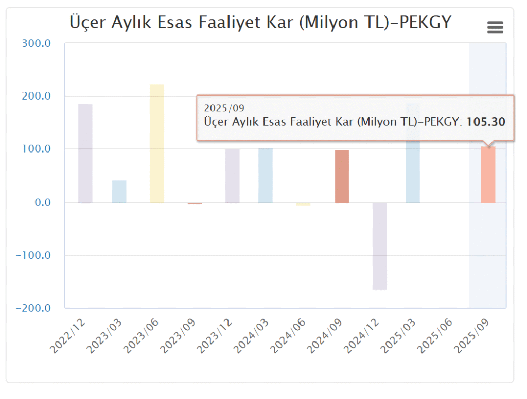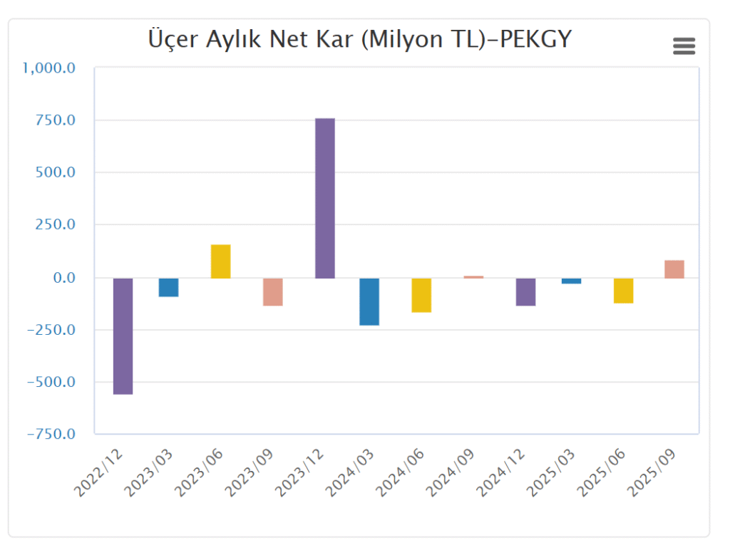 Peker Gayrimenkul Yatırım Ortaklığı A.Ş. (PEKGY), 2025 yılı üçüncü çeyreğine ilişkin konsolide finansal sonuçlarını Kamuyu Aydınlatma Platformu (KAP)’a bildirdi. Şirket, 1 Ocak–30 Eylül 2025 döneminde 403,9 milyon TL net dönem kârı açıkladı. Böylece Peker GYO, geçen yılın aynı döneminde açıkladığı 442,7 milyon TL kâra yakın bir performans sergiledi