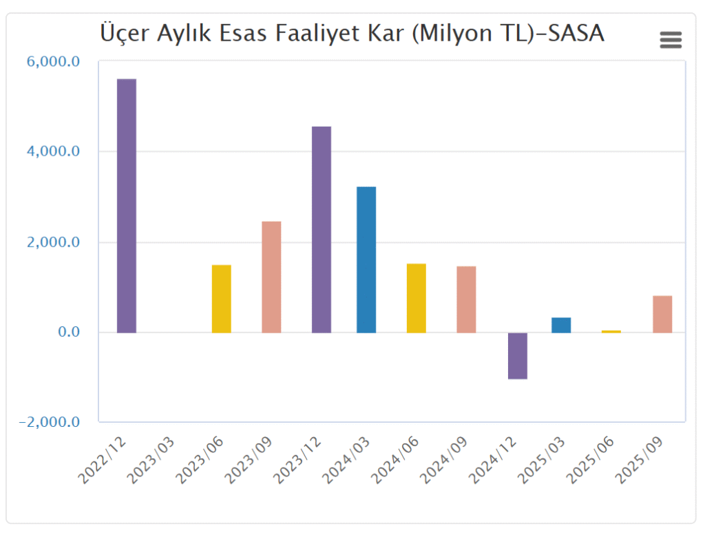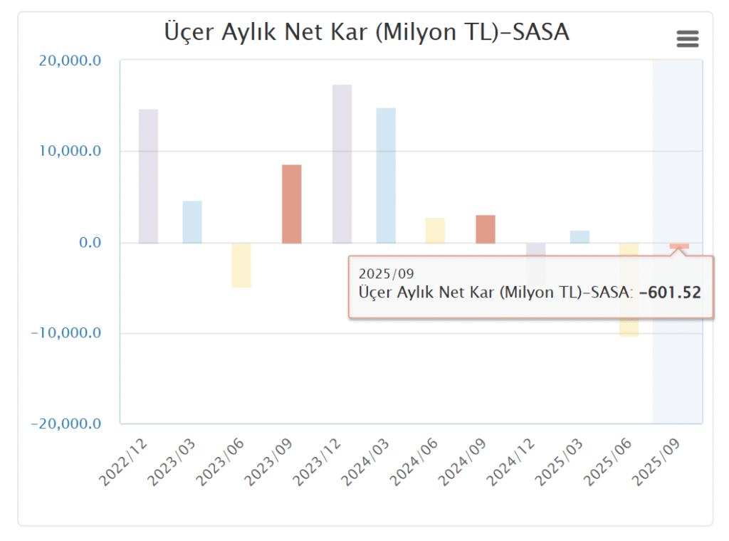 SASA, 2025 yılının ilk dokuz ayında 10,1 milyar TL net zarar açıklayarak, geçen yılın aynı dönemindeki 23 milyar TL net kara göre ciddi bir bozulma göstermiştir. Bu sonuç, hem faaliyet kârlılığındaki zayıflama hem de yüksek finansman giderleri ve kur farkı etkisi nedeniyle oluşmuştur30.09.2025 SPK FİNANSAL RAPORU ….
