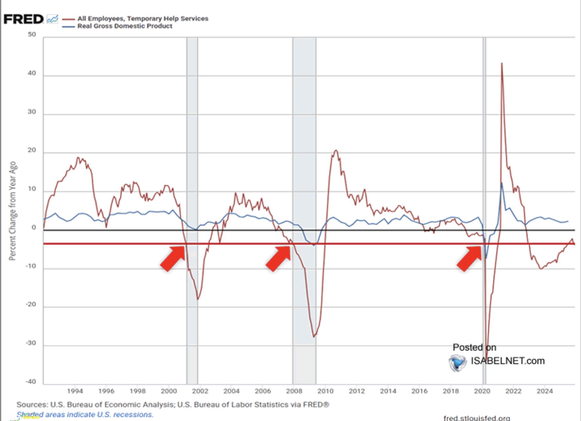 İş gücü piyasasına bakıldığında, ekonomik yavaşlamanın ilk sinyalleri en esnek alanlarda ortaya çıkıyor. Geçici istihdam, şirketlerin ekonomik belirsizliklere en hızlı tepki verdiği alan olarak bilinir. Ekonomi iyi giderken önce geçici işçiler alınır; belirsizlik arttığında ise ilk vazgeçilen yine bu çalışanlar olur. Son veriler, geçici istihdamda yıllık bazda belirgin bir düşüşe işaret ediyor. Bu düşüş, geçmişte resesyon öncesi dönemlerde sıkça görülen kritik bir eşiğin altına inmiş durumda. Buna karşın reel ekonomik büyüme hâlâ pozitif. Yani iş gücü piyasasının en hassas kısmı zayıflarken, genel ekonomi henüz bu bozulmayı tam olarak yansıtmıyor. Tarihsel deneyimler, bu tür ayrışmaların “gecikmeli kırılma” riskini artırdığını gösteriyor. Ekonomi yavaşlıyor ama henüz sert bir kırılma yaşanmıyor. Bu durum, karar alıcılar ve yatırımcılar için dikkatle izlenmesi gereken bir geçiş dönemine işaret ediyor.
