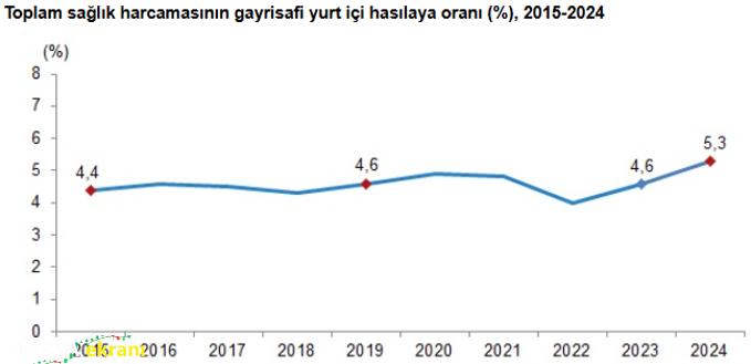Sağlık harcamalarının gayrisafi yurt içi hasıladaki payı, 2023’teki yüzde 4,6 seviyesinden 2024’te yüzde 5,3e çıktı.