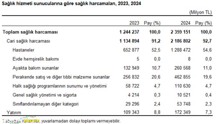 Son dakika: TÜİK açıkladı! 2024’te sağlık harcamaları yüzde 89 arttı