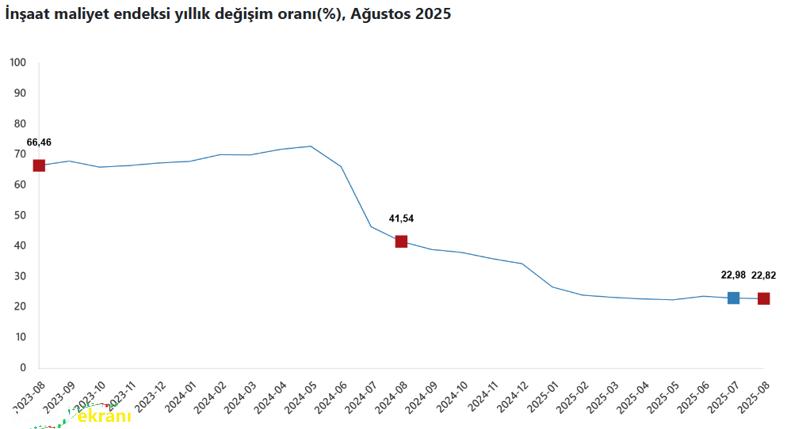 Türkiye İstatistik Kurumu (TÜİK) Ağustos 2025’e ilişkin inşaat maliyet endeksi verilerini açıkladı. Buna göre, inşaat maliyet endeksi, 2025 yılı Ağustos ayında bir önceki aya göre yüzde 1,05 arttı, bir önceki yılın aynı ayına göre yüzde 22,82 arttı. Bir önceki aya göre malzeme endeksi yüzde 1,46 arttı, işçilik endeksi yüzde 0,28 arttı. Ayrıca bir önceki yılın aynı ayına göre malzeme endeksi yüzde 19,17 arttı, işçilik endeksi yüzde 30,16 arttı.