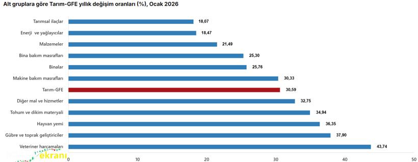 Türkiye İstatistik Kurumu (TÜİK), 2026 yılı Ocak ayına ilişkin Tarımsal Girdi Fiyat Endeksi (Tarım-GFE) verilerini yayımladı. Açıklanan verilere göre tarım sektöründe maliyet artışları yılın ilk ayında da devam etti.