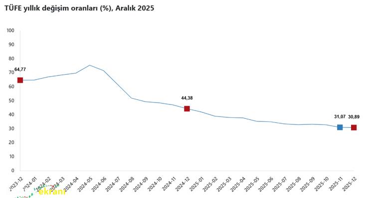 Memur ve memur emeklileri ile SSK ve Bağ-Kur emeklilerinin 2026 yılının ilk yarısında alacağı maaş zamlarını netleştiren 2025 yılı Aralık ayı enflasyonu açıklandı. Türkiye İstatistik Kurumu (TÜİK) tarafından açıklanan verilere göre aralık ayında enflasyon yüzde 0,89 artarken 2025 yılı enflasyonu yüzde 30,89 olarak gerçekleşti. TÜİK kasımda enflasyonu aylık yüzde 0,87, yıllık yüzde 31,07 açıklamıştı. AA Finans Enflasyon Beklenti Anketi’ne katılan ekonomistler, aralıkta Tüketici Fiyat Endeksi’nin aylık bazda yüzde 0,96 artacağını tahmin etmişti. Böylece aralık ayı enflasyonu beklentilerin altında gerçekleşti. İstanbul Ticaret Odası (İTO), İstanbul enflasyonun aralıkta aylık yüzde 1,23, yıllık yüzde 37,68 olarak gerçekleştiğini açıklamıştı. Enflasyon Araştırma Grubu’na (ENAG) göre ise aralıkta enflasyon aylık bazda yüzde 2,11, yıllık bazda yüzde 56,14 olarak gerçekleşti.