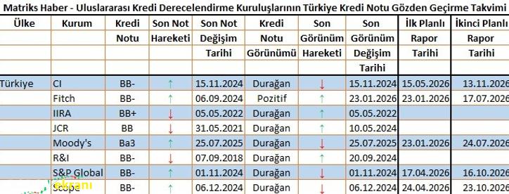 Kredi derecelendirme kuruluşlarının açıkladıkları tarihlerde bir rapor açıklama zorunluluğu bulunmuyor. Ancak Fitch ve Capital Intelligence (CI) söz konusu tarihlerde genel olarak rapor yayımlarken, diğer kredi derecelendirme kuruluşlarından S&P Global, Moody’s ve Scope, söz konusu tarihleri pas geçebiliyor.