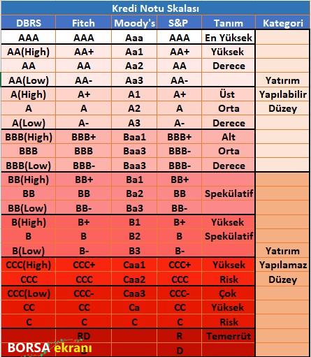 Kredi derecelendirme not takvimi ve yabancı para cinsinden kredi notları