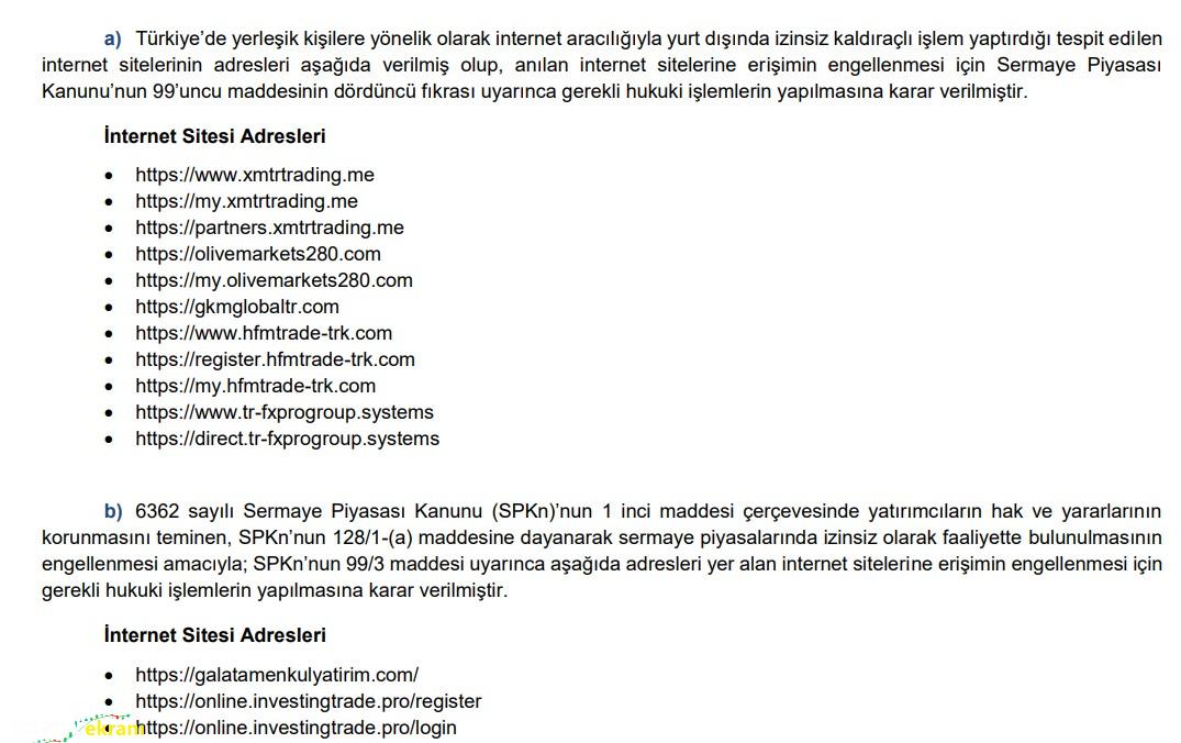 Enpara Bank AŞ’nin yurt içinde emir iletimine aracılık faaliyet izni verilmesine ilişkin başvurunun olumlu karşılanmasına karar veren Kurul, 14 internet sitesine erişimin engellenmesi için hukuki işlemlerin yapılması kararı aldı.