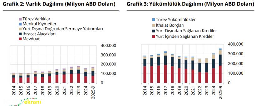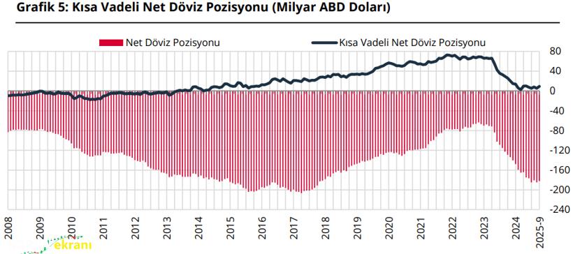 Yurt dışı kaynaklı kısa vadeli krediler 544 milyon dolar azalırken, uzun vadeli krediler 405 milyon dolar yükseldi. Eylül 2025’te firmaların kısa vadeli döviz varlıkları 140,99 milyar dolar, kısa vadeli yükümlülükleri ise 131,91 milyar dolar olarak gerçekleşti.