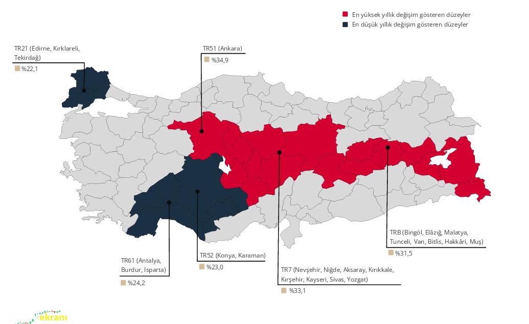 En yüksek yıllık artış Ankara bölgesinde görüldü