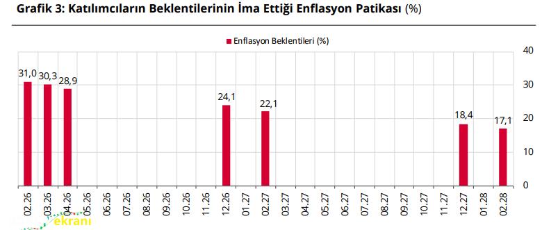 Katılımcıların GSYH 2026 ve 2027 yılı büyüme beklentileri ise bir önceki anket döneminde olduğu gibi bu anket döneminde de sırasıyla yüzde 3,9 ve 4,3 olarak gerçekleşti.