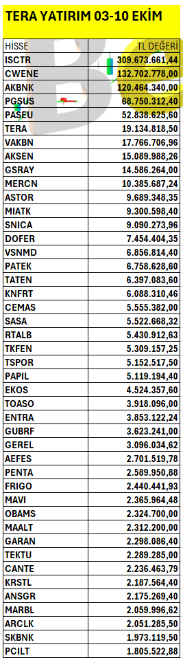 TERA YATIRIM 03-10 EKİM 2025 HAFTALIK TAKAS ANALİZ