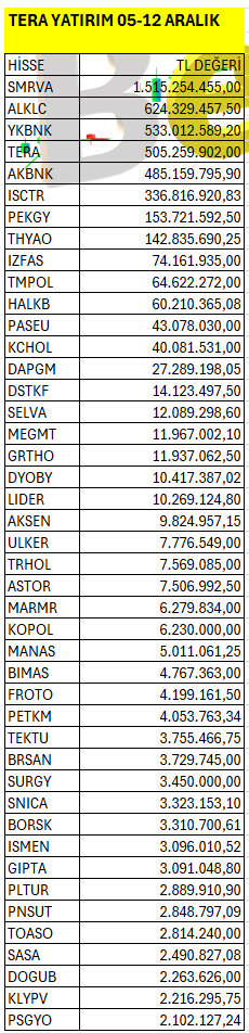 Tera Yatırım’ın haftalık bazda Borsa İstanbul’da en fazla yatırım yaptığı hisselerin listesi. Listeyi PDF formatında indirip inceleyebilirsiniz.
