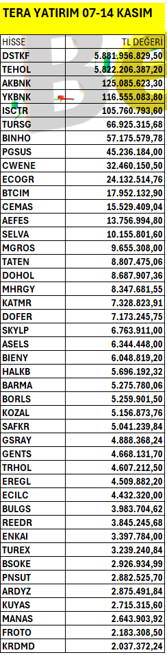 Tera Yatırım’ın haftalık bazda Borsa İstanbul’da en fazla yatırım yaptığı hisselerin listesi. Listeyi PDF formatında indirip inceleyebilirsiniz.