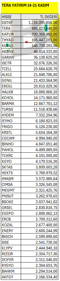 Tera Yatırım’ın haftalık bazda Borsa İstanbul’da en fazla yatırım yaptığı hisselerin listesi. Listeyi PDF formatında indirip inceleyebilirsiniz.