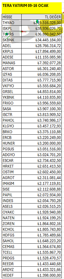 Tera Yatırım’ın haftalık bazda Borsa İstanbul’da en fazla yatırım yaptığı hisselerin listesi. Listeyi PDF formatında indirip inceleyebilirsiniz.