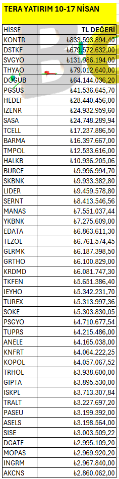 Tera Yatırım’ın haftalık bazda Borsa İstanbul’da en fazla yatırım yaptığı hisselerin listesi. Listeyi PDF formatında indirip inceleyebilirsiniz.
