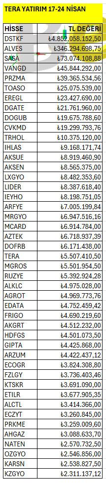 Tera Yatırım’ın takasında haftalık bazda en fazla artan ve azalan hisselerin listesi. Listeyi PDF formatında indirip inceleyebilirsiniz.