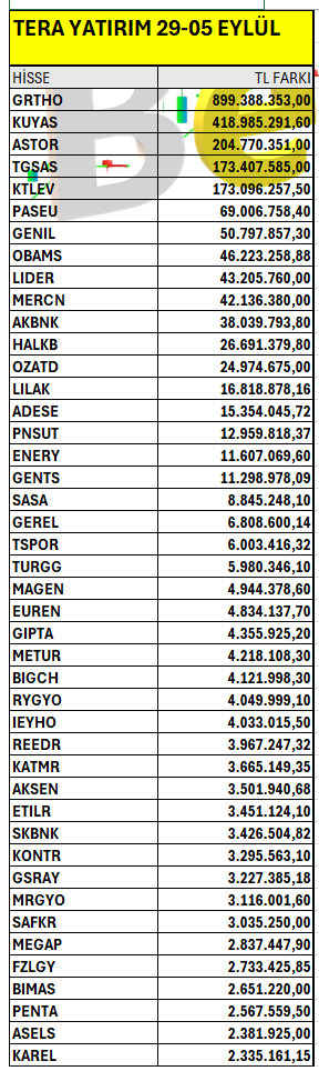 Not Belirtilen tarihle arasında bir hissede bedelli yada bedelsiz sermaye artırımı yapılmışsa o hisse ile ilgili veriyi dikkate almayınız.