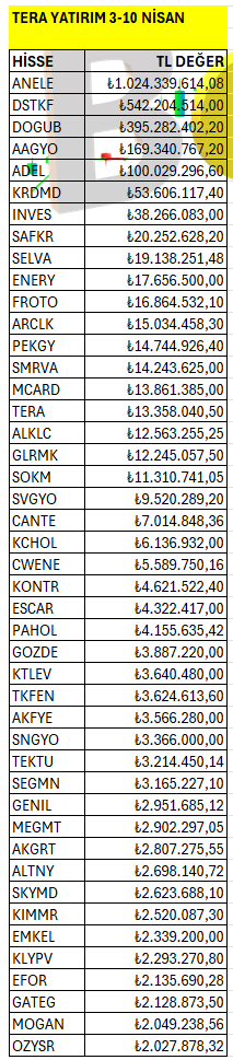 Tera Yatırım’ın haftalık bazda Borsa İstanbul’da en fazla yatırım yaptığı hisselerin listesi. Listeyi PDF formatında indirip inceleyebilirsiniz.