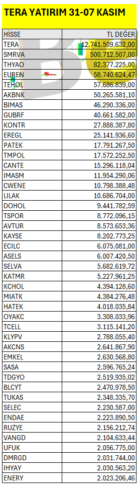 TERA YATIRIM 31-07 KASIM 2025 HAFTALIK TAKAS ANALİZ