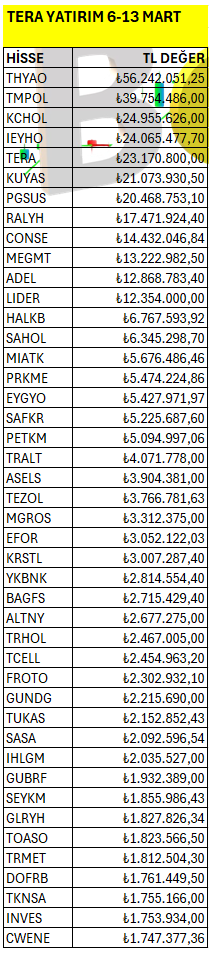 Tera Yatırım’ın haftalık bazda Borsa İstanbul’da en fazla yatırım yaptığı hisselerin listesi. Listeyi PDF formatında indirip inceleyebilirsiniz.