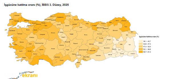 En düşük işgücüne katılma oranı ise yüzde 38,1 ile Hakkari ilinde oldu.