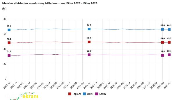 Mevsim etkisinden arındırılmış istihdam oranı yüzde 49,2 oldu