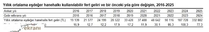 Yıllık ortalama eşdeğer hanehalkı kullanılabilir fert geliri 332 bin 882 TL