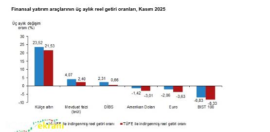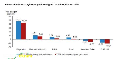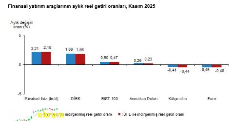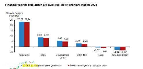 Türkiye İstatistik Kurumu (TÜİK), 2025 yılının kasım ayına ait finansal yatırım araçlarının reel getiri oranlarını açıkladı.