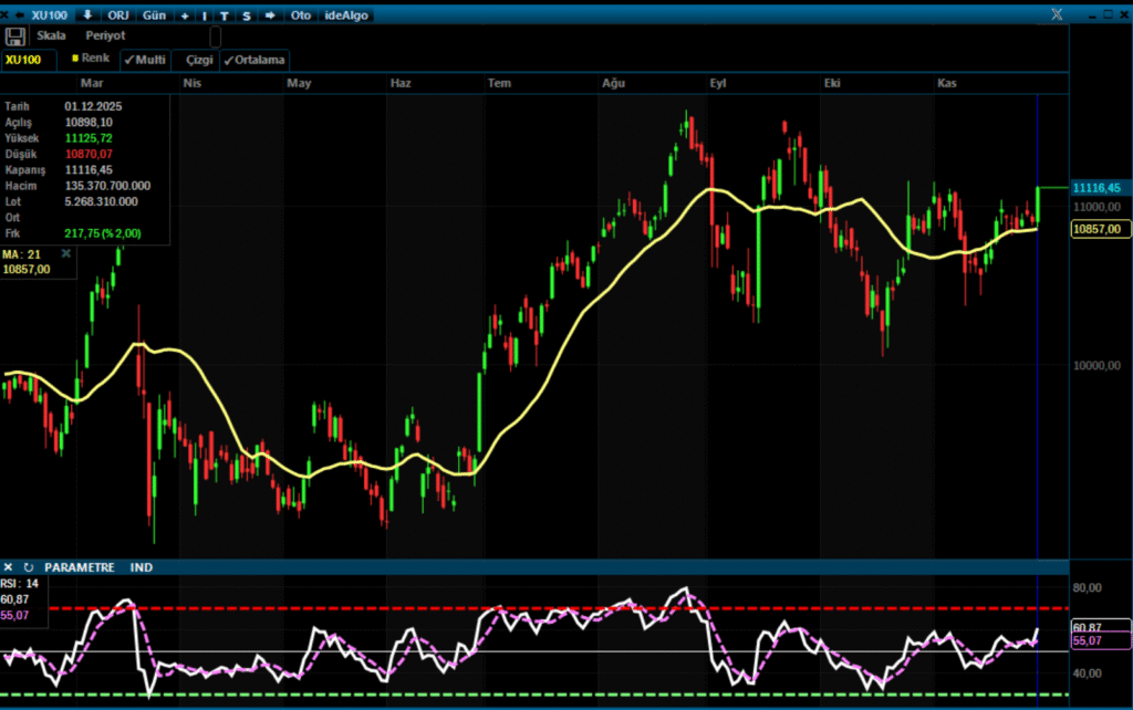 Bu seviye güçlü trendin devam ettiği ana eşik olarak izleniyor. - RSI: Nötr bölgede, aşırı alım/ satım sinyali bulunmuyor.