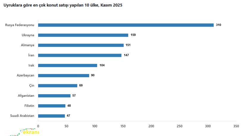 Kasım ayında ülke uyruklarına göre en fazla konut satışı 310 ile Rusya Federasyonu vatandaşlarına yapıldı. Rusları 159 satışla Ukrayna, 151 satışla Almanya vatandaşları izledi.