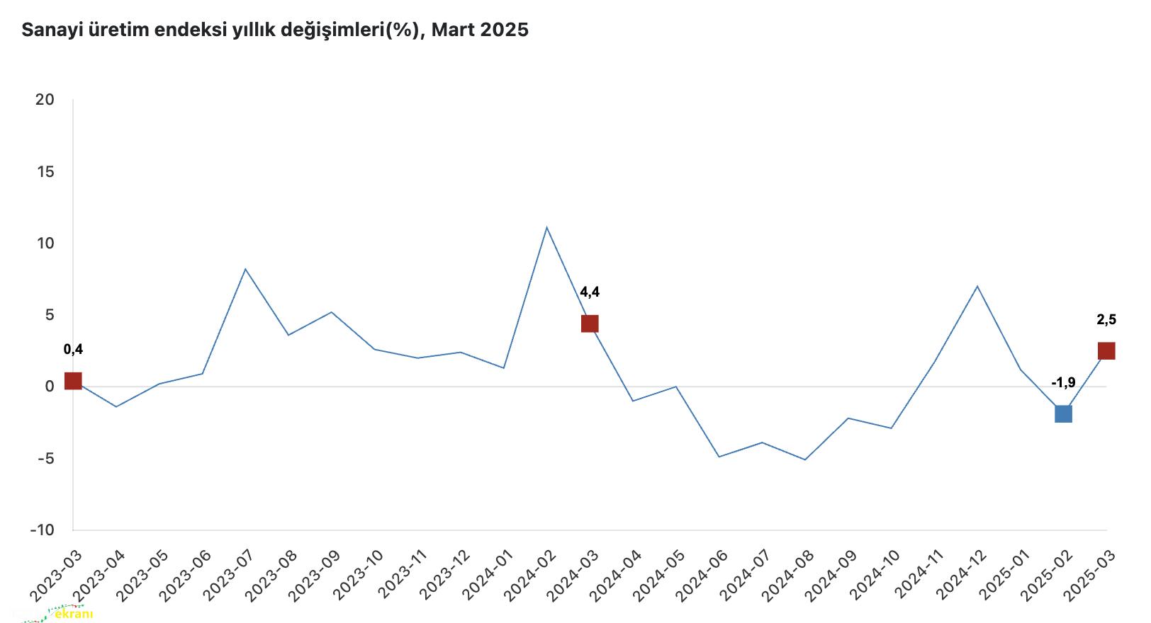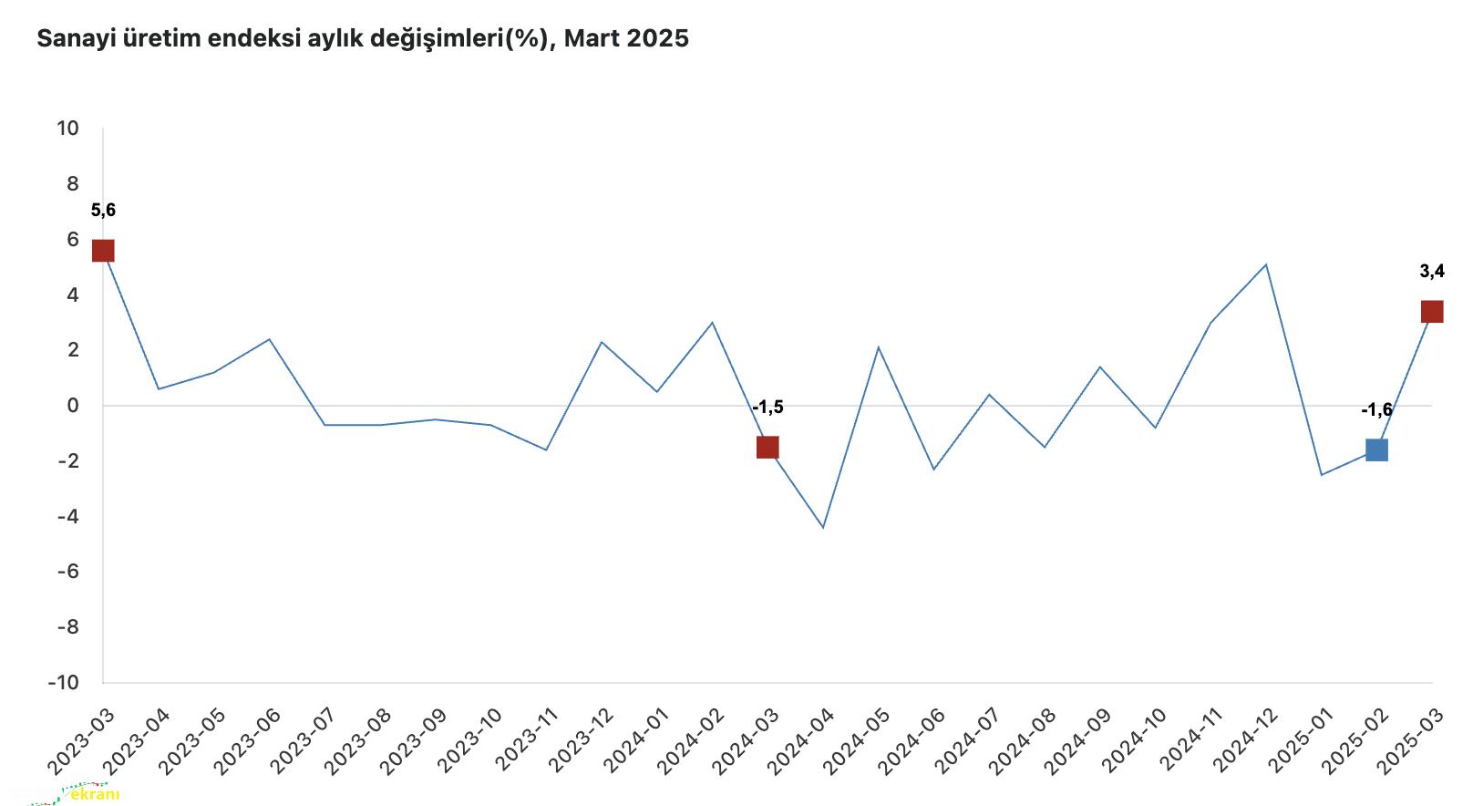 2025 yılı Mart ayı sanayi üretimi, bir evvelki aya nazaran %3,4 oranında artış kaydetti. Raporda, endüstrinin alt kesimlerinin performansına dair detaylar yer aldı.