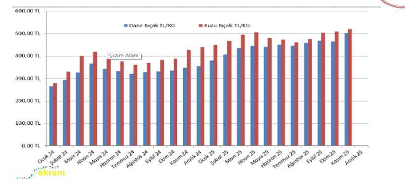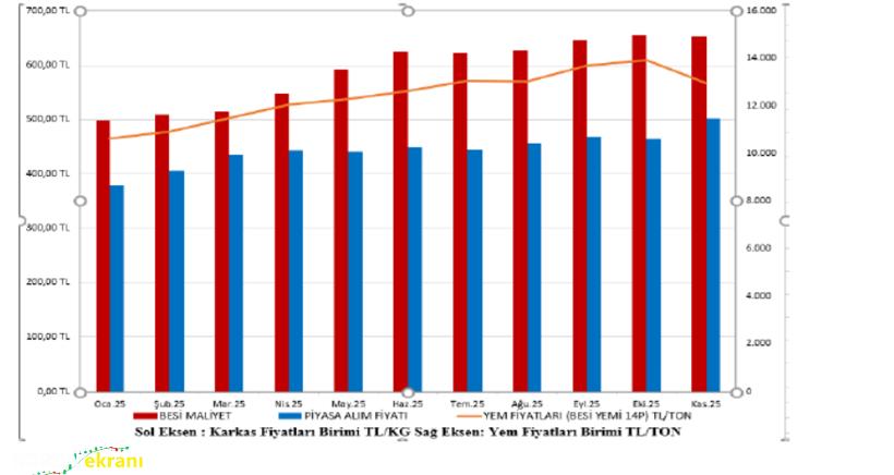 2025 yılında sığır ve kuzu karkas satış fiyatları ılımlı bir seyirle artış gösterdiğini belirten Hacıince, “Kırmızı et fiyatlarının ılımlı seyrindeki başarıda ESK’nın yıl boyu süren müdahalesinin rolü çok büyük. ESK tarafından ithal edilen kesimlik canlı sığır ve karkas et piyasaya verilmiş ve piyasalarda oluşabilecek suni fiyat artışlarının önüne geçildi” dedi. Üretim maliyetlerinin karkas satış fiyatlarının seyrine göre daha yüksek bir ivme ile yükselmiş olduğuna dikkat çeken Hacıince, “Yem fiyatlarındaki artışın da mutedil bir şekilde yükseldiği göz önüne alındığında maliyet artışının asıl sebebinin besilik materyalin yüksekliği olduğu sonucuna ulaşıldı. Yıllara göre karakaş satış fiyatı-maliyet-yem fiyatı ilişkisine bakıldığında kırmızı et üretim maliyetleri içerisinde en büyük paya sahip olan besilik sığırın ithalatı ile besilik sığır fiyatlarının kontrol altında tutulması sağlanması amaçlanmış olup, 2025 yılı için Et ve Süt Kurumu’na tanımlanan 520 bin besilik sığır ithalatı kotasının %80’lik bölümüne ait teslimat gerçekleştirilmiş durumda. Gerçekleştirilen ithalat ile yurt içi besilik sığır fiyatlarının kontrol altında tutulduğu gözlemlendi” diye konuştu.