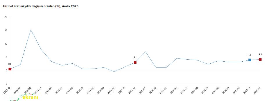 Veriler belli oldu Hizmet üretimi aralık ayında arttı