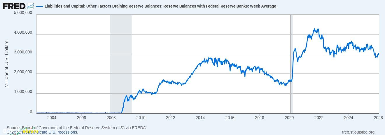 Fed bilançosunun rezerv bileşenleri, sistemdeki likiditenin yönünü ve derinliğini göstermektedir. Bu tablo, Fed’in likiditeyi nasıl yönettiğine dair arka planı sunar.