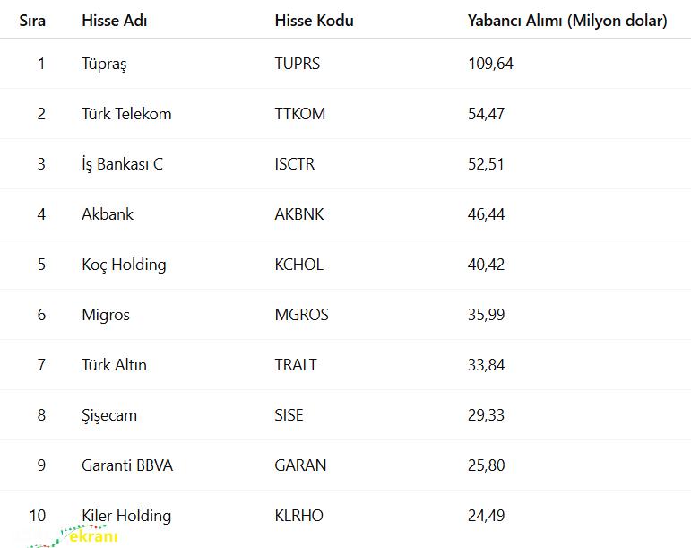 İşte yabancı yatırımcının en çok alım yaptığı hisseler ve tutarları: