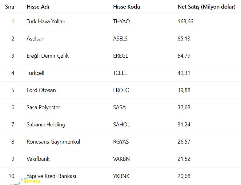 İşte yabancıların kasımda en çok satış yaptığı hisseler ve tutarları: