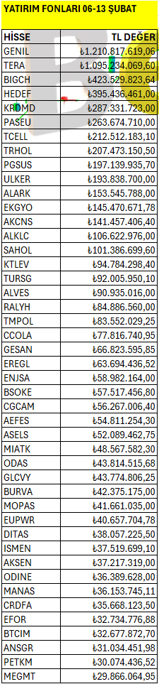 Yatırım Fonları’ın haftalık bazda Borsa İstanbul’da en fazla yatırım yaptığı hisselerin listesi. Listeyi PDF formatında indirip inceleyebilirsiniz.