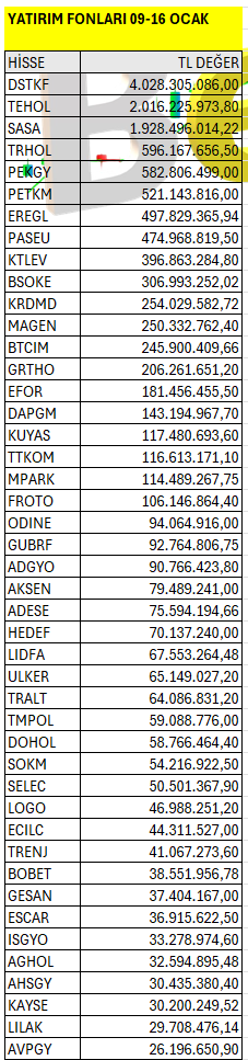 Yatırım Fonları’ın haftalık bazda Borsa İstanbul’da en fazla yatırım yaptığı hisselerin listesi. Listeyi PDF formatında indirip inceleyebilirsiniz.