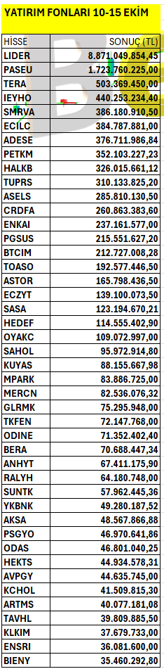 YATIRIM FONLARI 10-17 EKİM 2025 HAFTALIK TAKAS ANALİZ