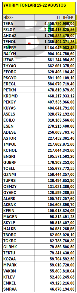 Yatırım Fonları’ın haftalık bazda Borsa İstanbul’da en fazla yatırım yaptığı hisselerin listesi. Listeyi PDF formatında indirip inceleyebilirsiniz.
