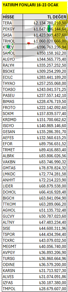 Yatırım Fonları’ın haftalık bazda Borsa İstanbul’da en fazla yatırım yaptığı hisselerin listesi. Listeyi PDF formatında indirip inceleyebilirsiniz.