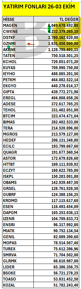 YATIRIM FONLARI 26-03 EKİM 2025 HAFTALIK TAKAS ANALİZ