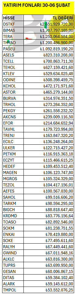 Yatırım Fonları’ın haftalık bazda Borsa İstanbul’da en fazla yatırım yaptığı hisselerin listesi. Listeyi PDF formatında indirip inceleyebilirsiniz.