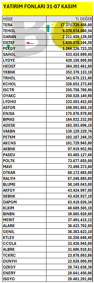 YATIRIM FONLARI 31-07 KASIM 2025 HAFTALIK TAKAS ANALİZ
