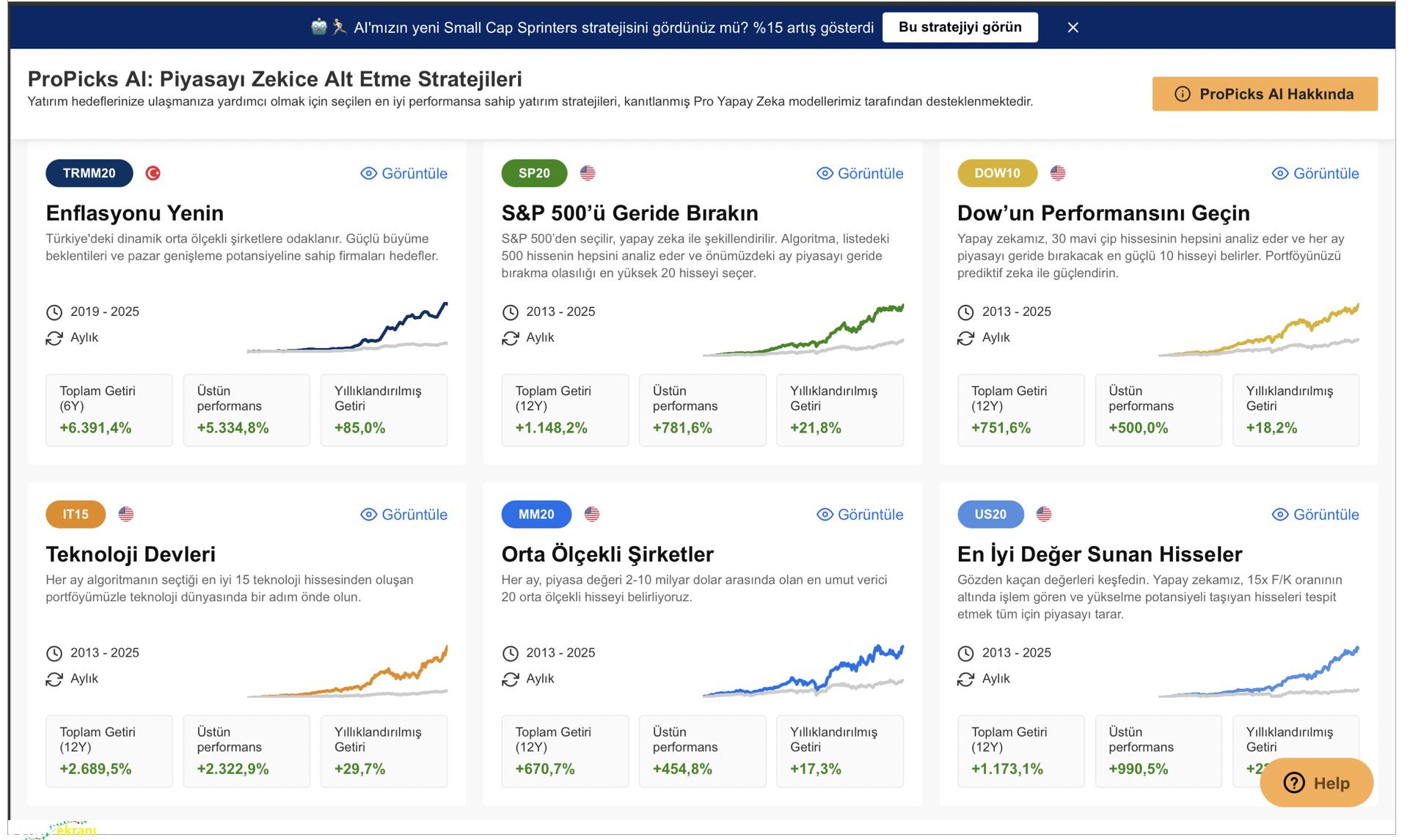 InvestingPro’nun global ölçekte sunduğu ProPicks stratejileri, farklı temalar ve sektörler üzerinden yatırım fırsatlarını sürekli güncelliyor. Örneğin bu ay “Teknoloji Devleri” stratejisinde yer alan VSAT hissesi, ay başından bu yana yatırımcısına yaklaşık %20 kazanç sağladı.